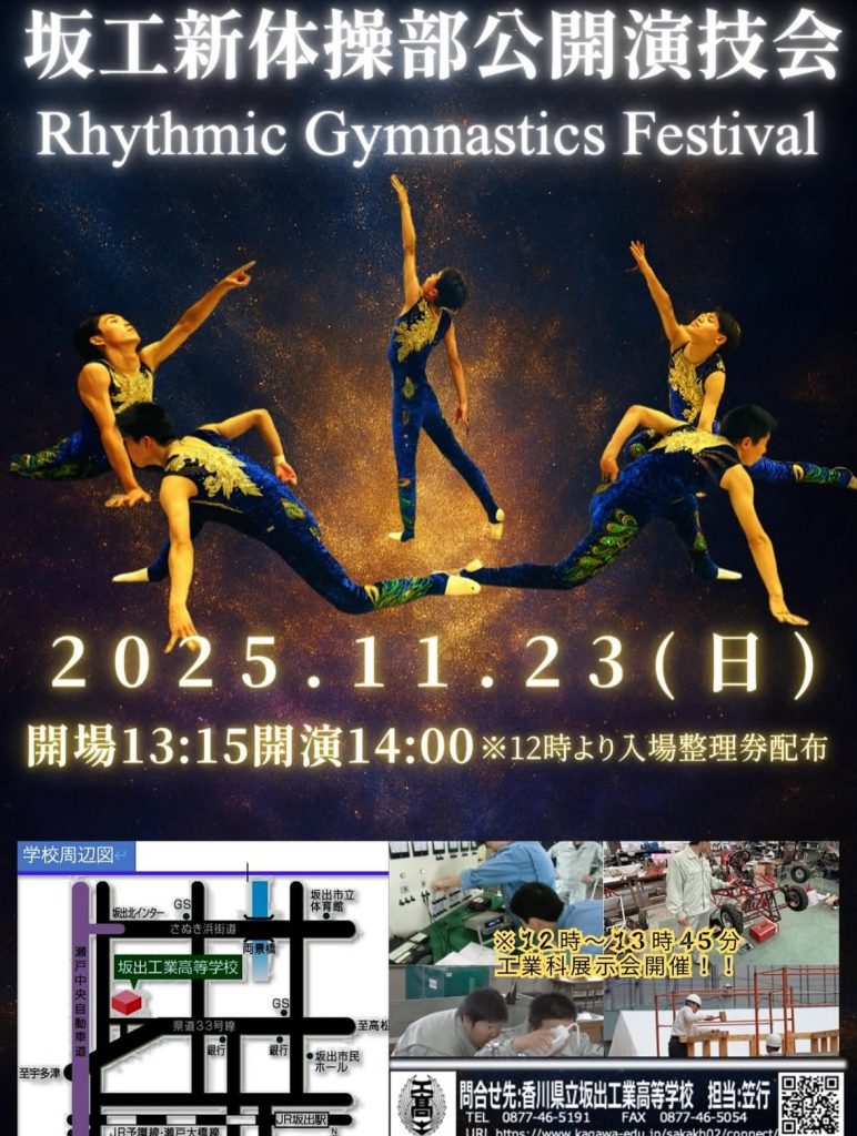 11月23日(日)に坂出工業体育館にて、男子新体操部の演技会が開催されます(^^♪