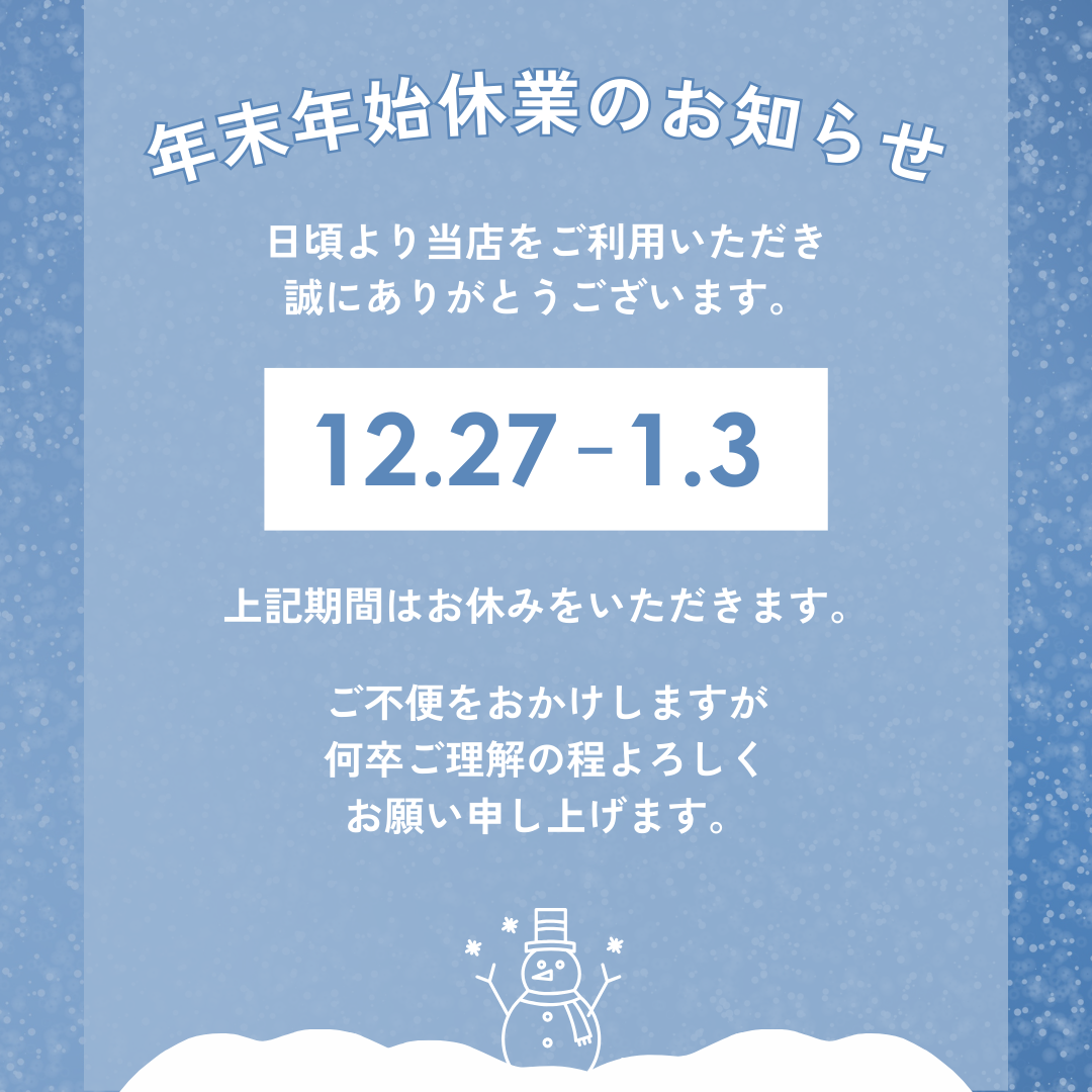 年末年始休業のお知らせ