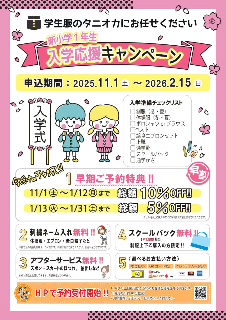 学生服のタニオカでは、お子様に最適な制服をご準備しております。
