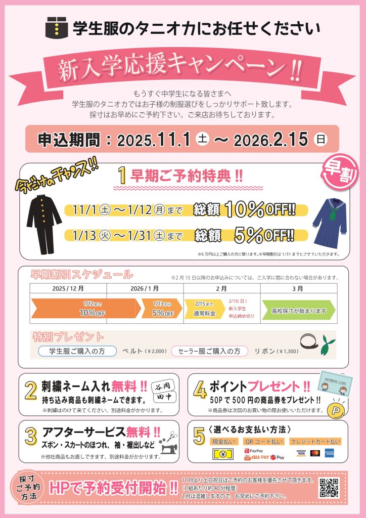 2026年(中学校)新入学採寸申込について