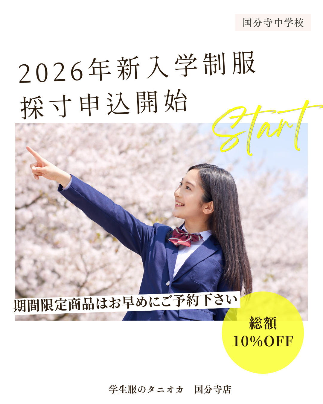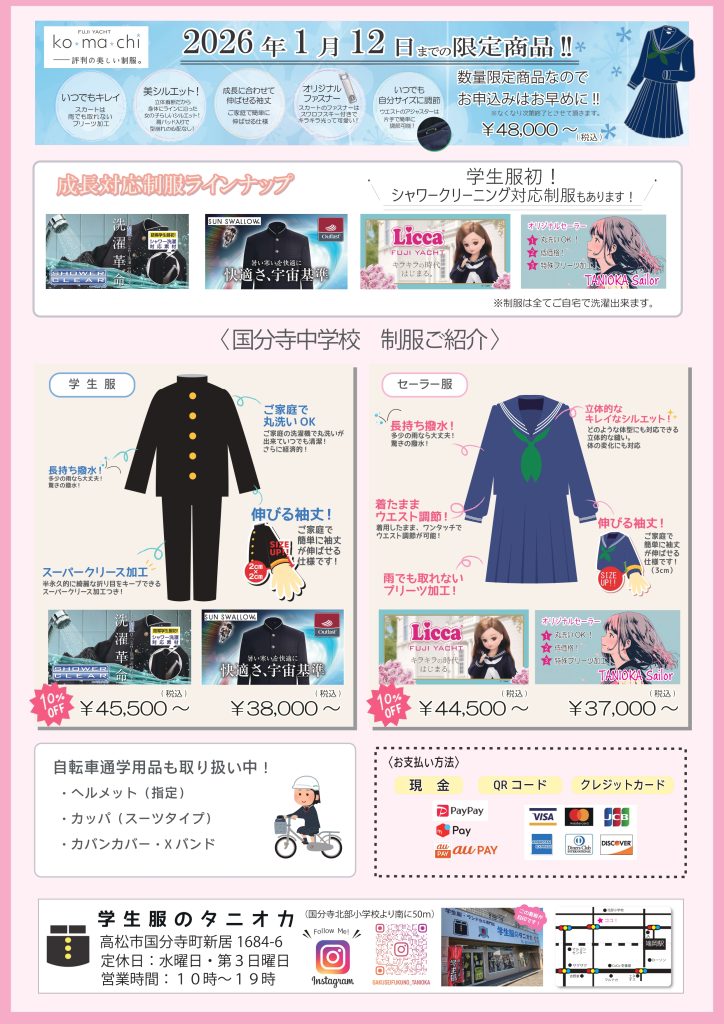 2026年国分寺中学校の新入学制服採寸の申し込みが始まりました。