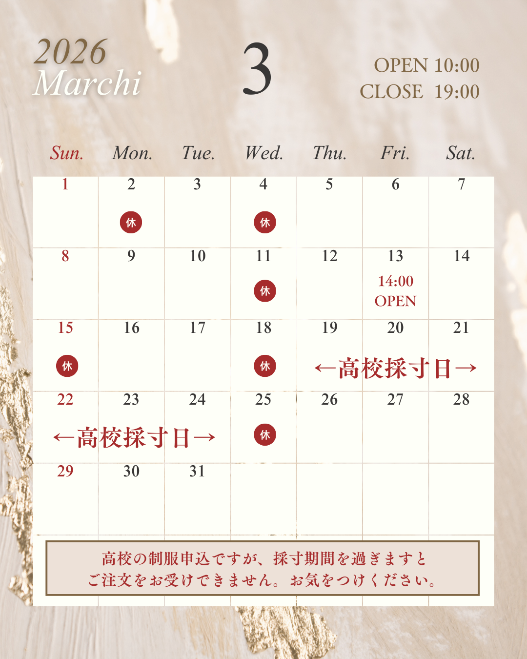 採寸期間を過ぎての採寸は一切お受けすることができません。